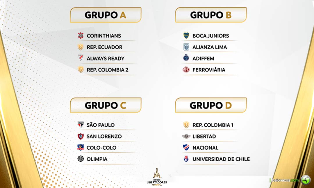 Grupo A: Corinthians (Brasil), un representante de Ecuador, Always Ready (Bolivia) y el subcampeón de la liga colombiana.