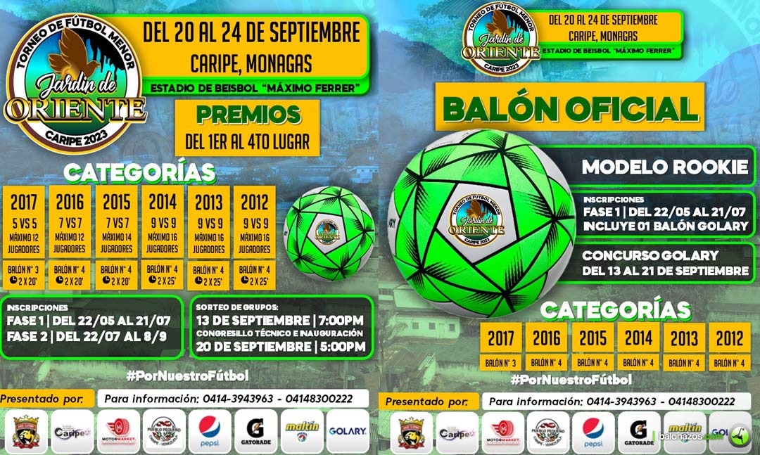 Por Luis Rojas Montero.- Del 20 al 24 de septiembre de 2023, la ciudad de Caripe, estado Monagas, estará albergando la segunda edición del Torneo de fútbol menor Jardín de Oriente, en las categorías 2017, 2016, 2015, 2014, 2013 y 2012, donde se espera la participación de 700 jugadores de las escuelas y academias del oriente del país.