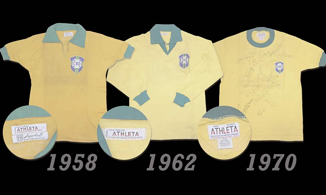 En los primeros cinco mundiales disputados entre 1930 y 1954, los campeones no lucieron marcas de ropa deportiva oficial. Fue a partir de 1958 que apareció la marca brasileña Athleta vistiendo oficialmente a los brasileños que ganaron el Mundial de Suecia, repitieron en Chile 1962 y en México 1970 convirtiéndose en la primera firma deportiva en ganar tres campeonatos de fútbol del mundo. En 1990 Adidas la igualó y 1998 la superó con su cuarta estrella.